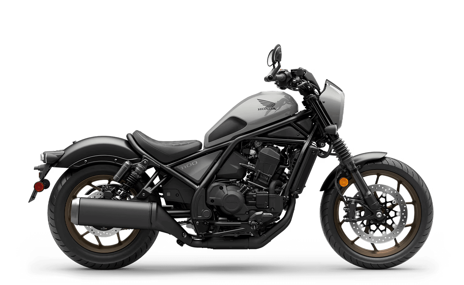 Honda's Rebel 1100 line blends power, tech, and attitude—now available in Matte Black Metallic and Matte Silver Metallic. With our legendary parallel-twin power, modern connectivity, and blacked-out style, it’s your ticket to stylish freedom. Standard models offer manual or DCT transmissions, while the SE elevates the ride with factory-custom paint and premium details.